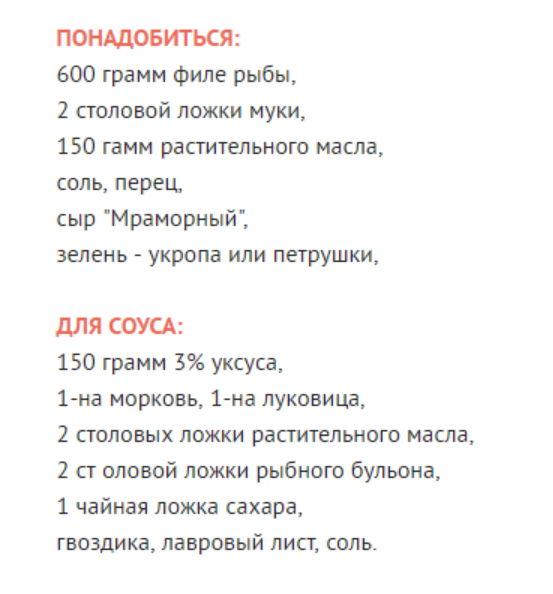 2. Филе рыбки присолить, наперчить, запонировать в му-ке, обжарить на масле до пшеничной корочки.